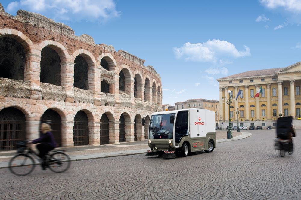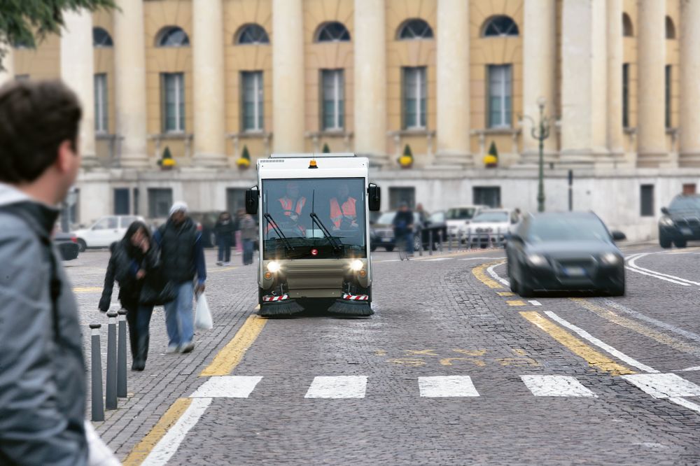 CS140 Twin Actions integrerede styresystem på alle 4 hjul sammen med de reducererede dimensioner sikrer god manøvredygtighed, selv nær vægge og hegn, og garanterer, at den er let at anvende på steder, hvor pladsen er begrænset, som for eksempel i en historiske bymidte eller fyldte områder. Samtidigt garanteres maksimal stabilitet under transport, selv ved højeste hastighed.