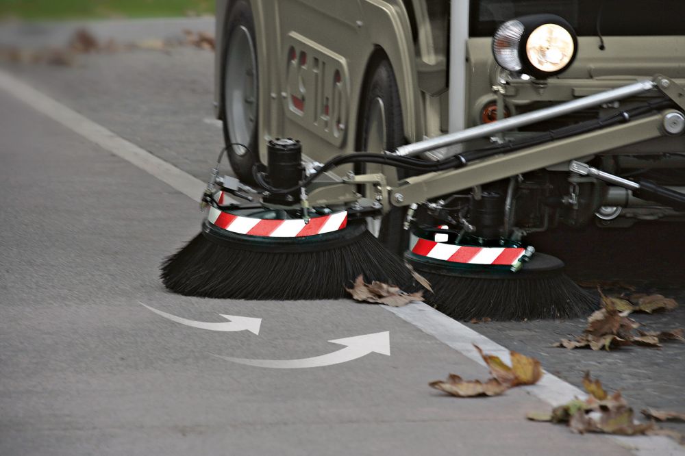 CS140 Twin Action bruger den centrale børste uafbrudt, følger perfekt vejprofilen, sikrer højere kvalitetsrengøring, da det er ensartet for hele bredden på børsten og højere produktivitet, da det kan gøre større arealer rent hurtigere end almindelige fejemaskiner, som er nødt til at anvende to sidebørster.