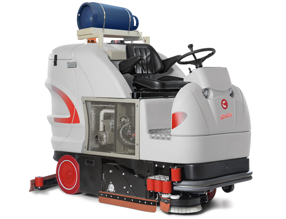Ultra 100 BS-GS/120 B-G er ride-on gulvvaskemaskiner med automatisk trækkraft, der fås som vaske-tørre version med cylinderformede børster med 100 cm arbejdsbredde (Ultra 100 BS-GS) eller i en vaskeversion med pladebørster med 120 cm arbejdsbredde (Ultra 120 B-G). Begge versioner kan leveres til anvendelse af batteri eller med en benzin eller LPG Honda motor. Takket være denne version, er det muligt at rengøre større arealer med samme effektivitet.
